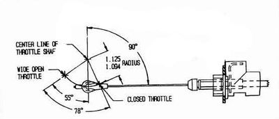 It becomes an issue just off idle, where a street car operates more often than any other throttle angle. What the pressure gauge will show you is little or no pressure spike on very slight throttle movement. This is the killer of automatic overdrives in retrofit applications. The radius is a simple measurement that can be done with a caliper, a machinist rule, or even in a pinch a tape measure to get an idea. You measure from the centerline of the throttle shaft to the center of the TV stud. It should be approx 1 and 1/8th inch or slightly less. We prefer to see if on the short side. 1.100″.